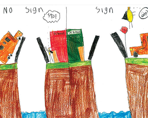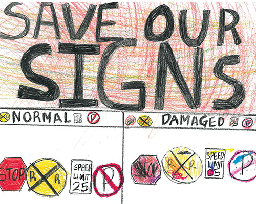 The outstanding featured drawings will help draw attention to the importance of responsible driving behaviors and the importance of traffic signs. Students submitting winning drawings will receive an official Safety Warrior certificate and be recognized within your school and statewide through Vision Zero’s social media and at the annual Vision Zero Partner Conference.